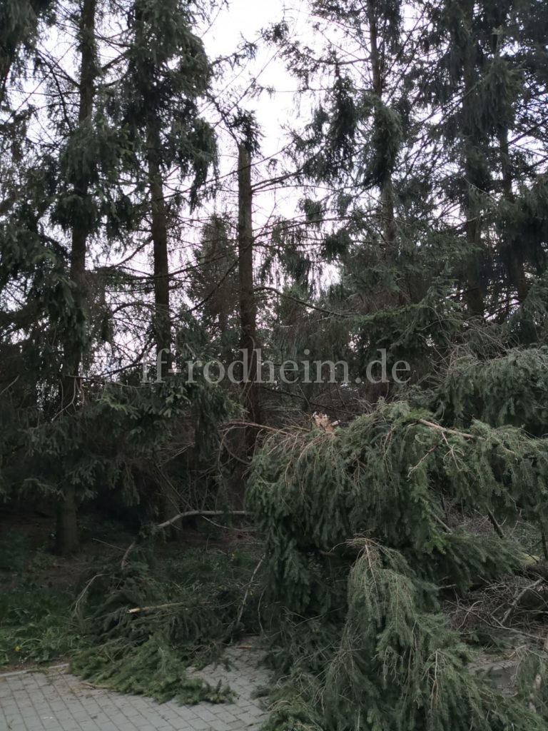 Einer der Bäume ist in etwa 5 Meter Höhe abgeknickt…